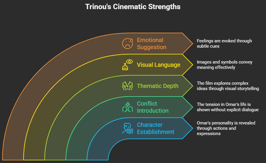 | Minimal Dialogue | Sparse spoken language | Shifts focus to visual storytelling |
